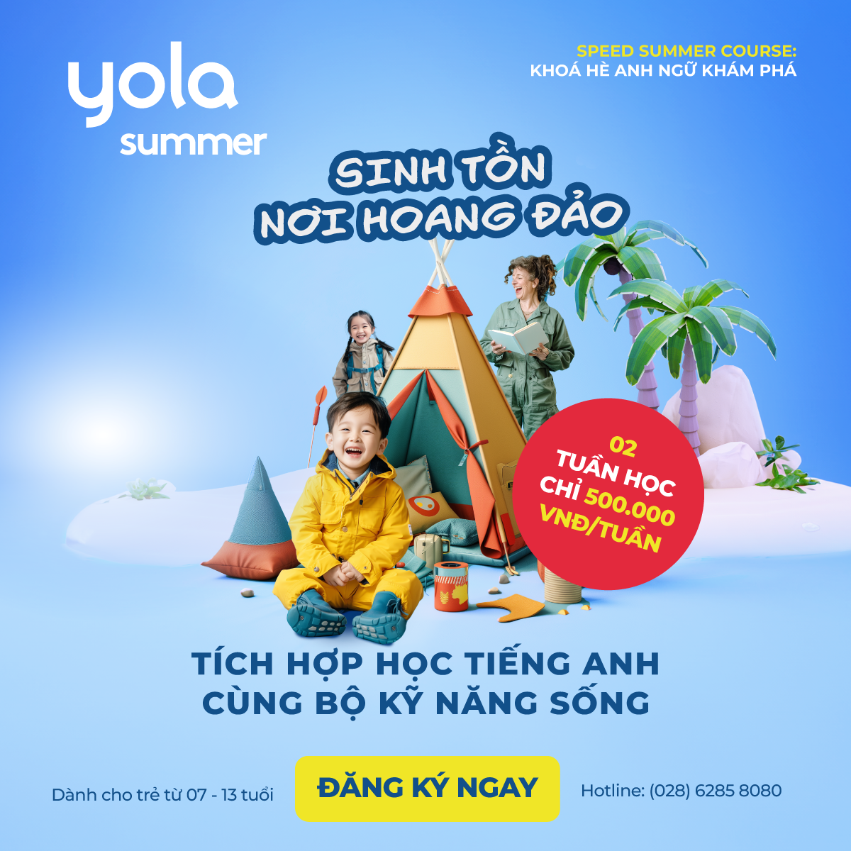 Tháng 06 này, YOLA chính thức ra mắt Speed Summer Course: Khóa hè Anh ngữ khám phá dành cho trẻ từ 07 – 13 tuổi, hứa hẹn mang đến cho các con những thử thách mới đầy phiêu lưu cùng những bài học bổ ích trong mùa hè 2024.