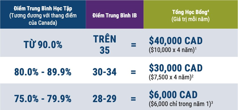 Năm 2023, Lakehead mang tới cơ hội nhận học bổng lên tới $40,000 CAD/4 năm, cụ thể như sau: