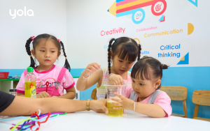 Đây cũng chính là yếu tố hiện hữu trong môi trường học tại YOLA, giúp cho trẻ 3 – 6 tuổi phát triển toàn diện về tiếng Anh, nhận thức, tâm lý, thể chất và cảm xúc xã hội, thông qua các hoạt động như: