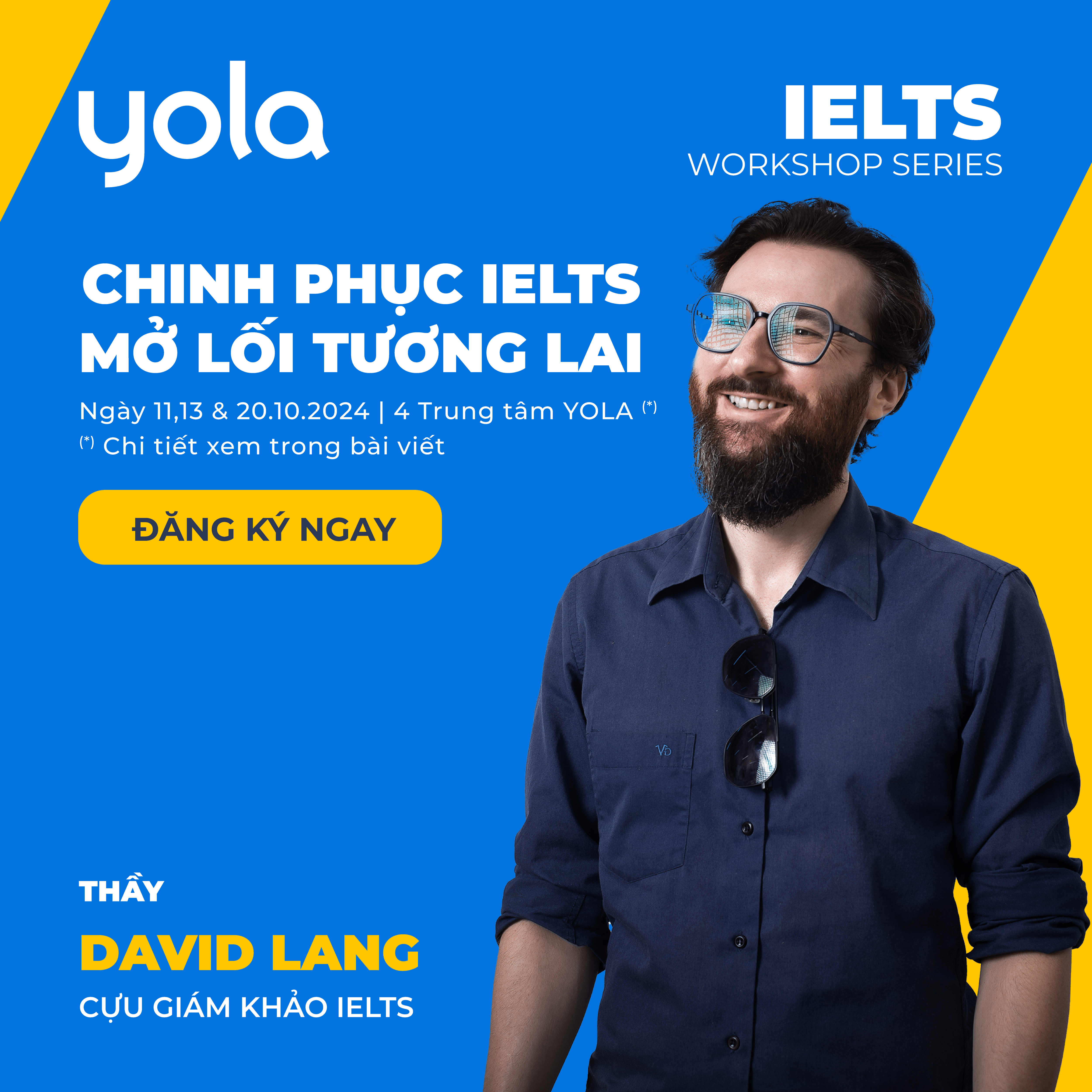 Lưu lại ngay lịch diễn ra IELTS Workshop Series cùng thầy David Lang – cựu giám khảo IELTS, người sáng lập của HowtodoIELTS.com: