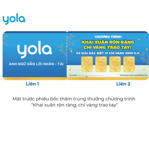 Từ ngày 07/02 đến 02/03/2025, khi ghi danh khóa tiếng Anh bất kỳ tại YOLA, ba mẹ nhận ngay 01 lượt bốc thăm trúng 01 chỉ vàng 9999 SCJ cực hấp dẫn.