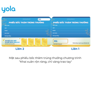 Bước 3: Vào ngày livestream (nhân viên YOLA sẽ thông báo đến khách hàng), đối chiếu thông tin trên Liên 1 với kết quả bốc thăm. Nếu trùng khớp, khách hàng nhận 01 Chỉ Vàng 9999 SJC. Livestream diễn ra trên Fanpage YOLA với giám sát trực tiếp.