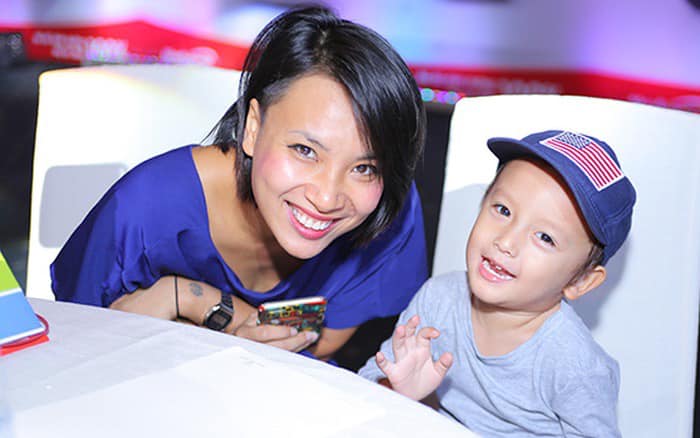 Giám đốc nội dung Vietecera, Tạ Thùy Minh và con trai Linh Louis. Ảnh: Tạ Thùy Minh.
