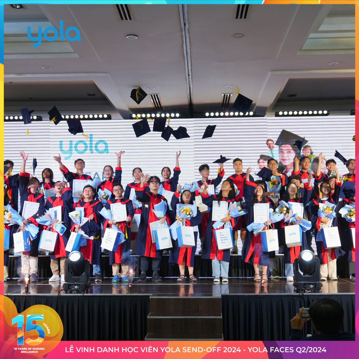 Hơn 800 học viên cùng gia đình của mình đã cùng hội tụ tại Lễ Vinh danh học viên: YOLA Send-off 2024 và YOLA Faces Q2/2024 trong niềm tự hào và vui mừng cho kết quả học tập của các em.