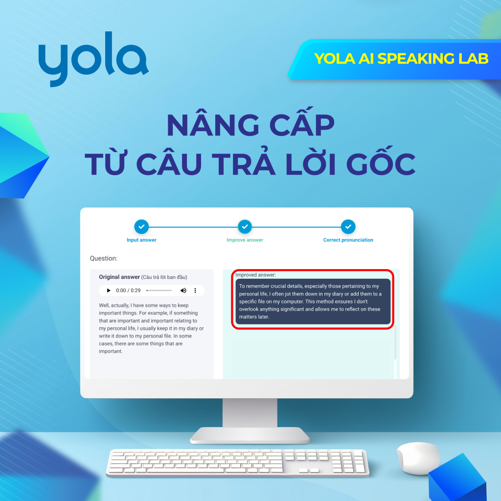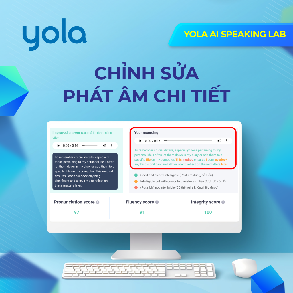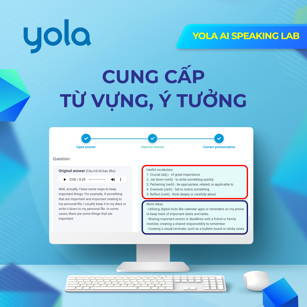 – AI Speaking Lab – Công cụ luyện Speaking thông minh giúp bạn chủ động luyện mọi lúc mọi nơi. tiến bộ vượt trội nhờ bài sửa cá nhân hoá