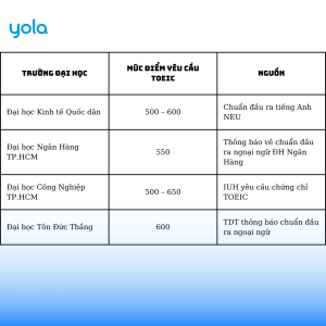 3.1 Danh sách một số trường đại học yêu cầu chứng chỉ TOEIC để tốt nghiệp:
