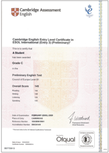 - Giá trị chứng nhận: Chứng chỉ này không có thời hạn hết hiệu lực chính thức và thường không cần phải thi lại để duy trì giá trị của nó. Khi trẻ lên các cấp học cao hơn, ba mẹ nên cân nhắc các chứng chỉ phù hợp như A2 Flyers.