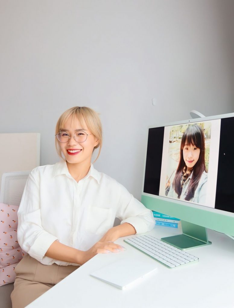 Ảnh trên màn hình máy tính là thời điểm Sun hồi năm nhất đại học. Hơn 10 năm qua, Sun đã mở mang nhiều kiến thức và có thêm nhiều trải nghiệm sống, một trong những lý do giúp mình trưởng thành như hiện tại chính là nhờ tư duy học ngoại ngữ không áp lực về điểm số.