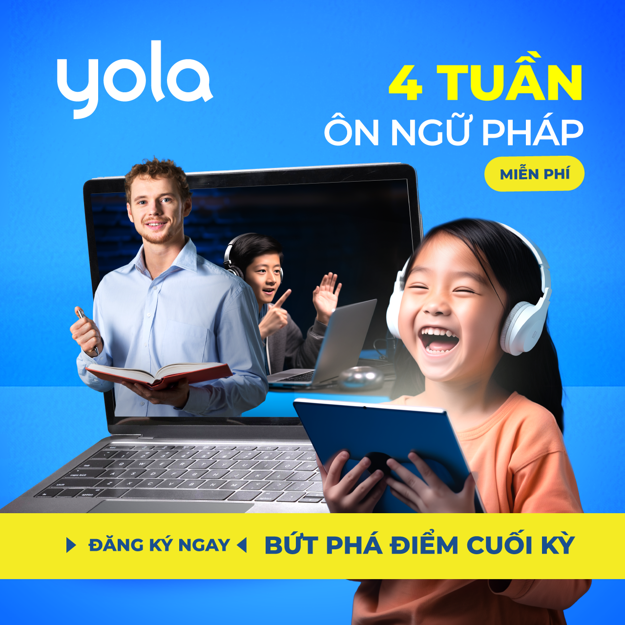 Thấu hiểu được những khó khăn của các bậc phụ huynh và các bạn học sinh, YOLA chính thức khai giảng Khóa học Ôn luyện ngữ pháp nhằm giúp các bạn củng cố và nắm vững nền tảng kiến thức ngữ pháp trọng tâm, đồng thời cung cấp những phương pháp làm bài tối ưu để các bạn có thể tự tin chinh phục kỳ thi sắp tới.